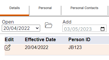 Step 1– Use the calendar icon to select the date the changes are effective from for the staff member in question. Once selected this date will populate in the Add field.