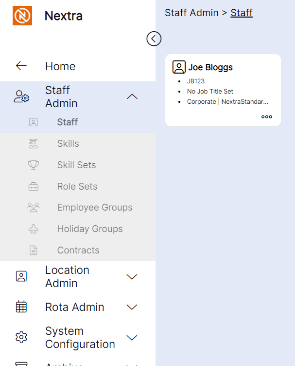 To view staff records in the system, use the following process: