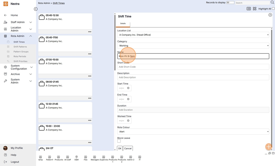 Name– Enter the name of the shift as users want to see it on the Rota, within Shift Patterns, and on the My Rota section of self-service. It will display the same name in all 3 areas.