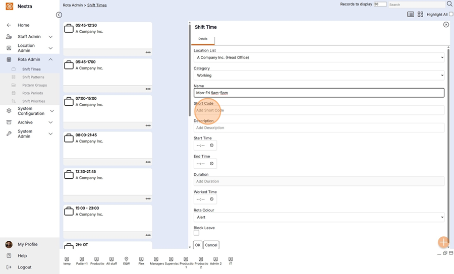 Short Code– Enter a short code for the shift, for example, E for early, L for late, N for night.