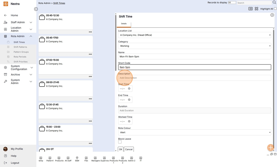 Description– Enter a general description for the shift (this is not a mandatory field).