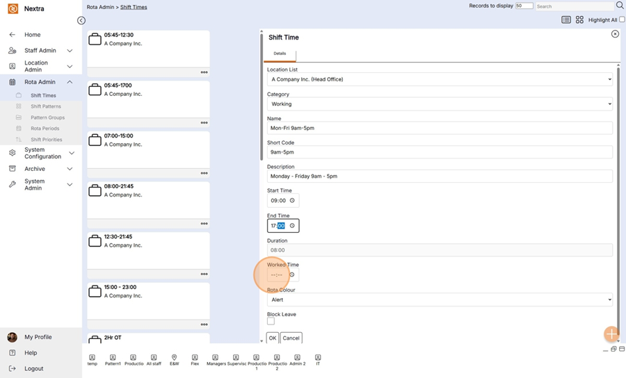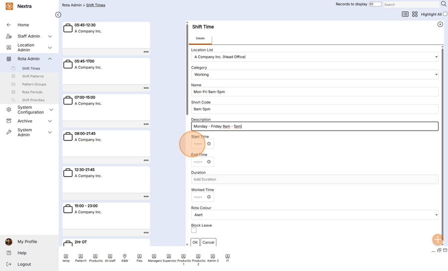 Start Time– Select the start time of shift.
