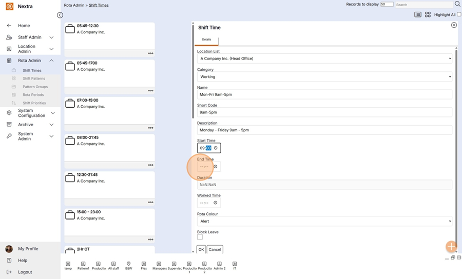 End Time– Select the end time of shift.