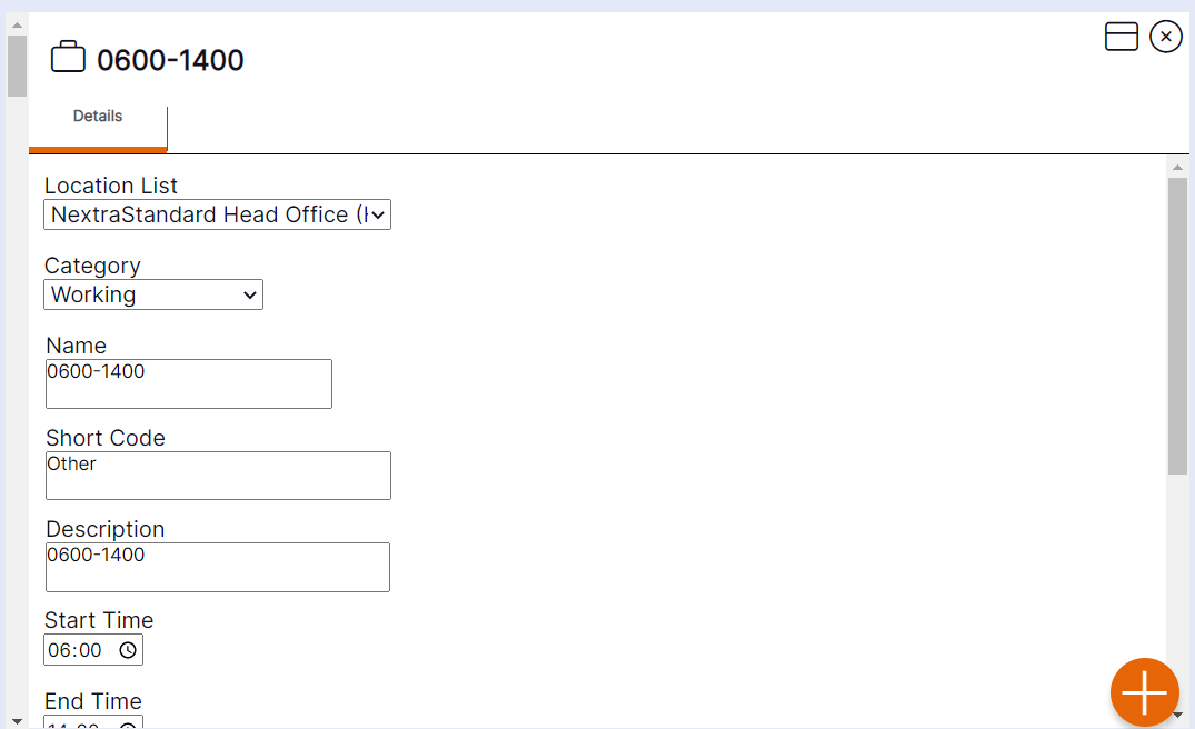 Step 3– The "Shift Time" record will then open. Use the scroll bar to see all details and save.