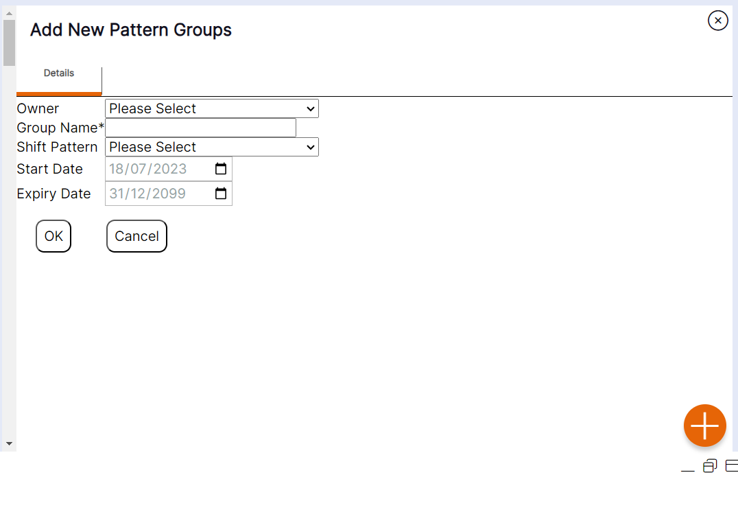 Step 3 – Click on the orange cross in the bottom right hand corner to create a new pattern group