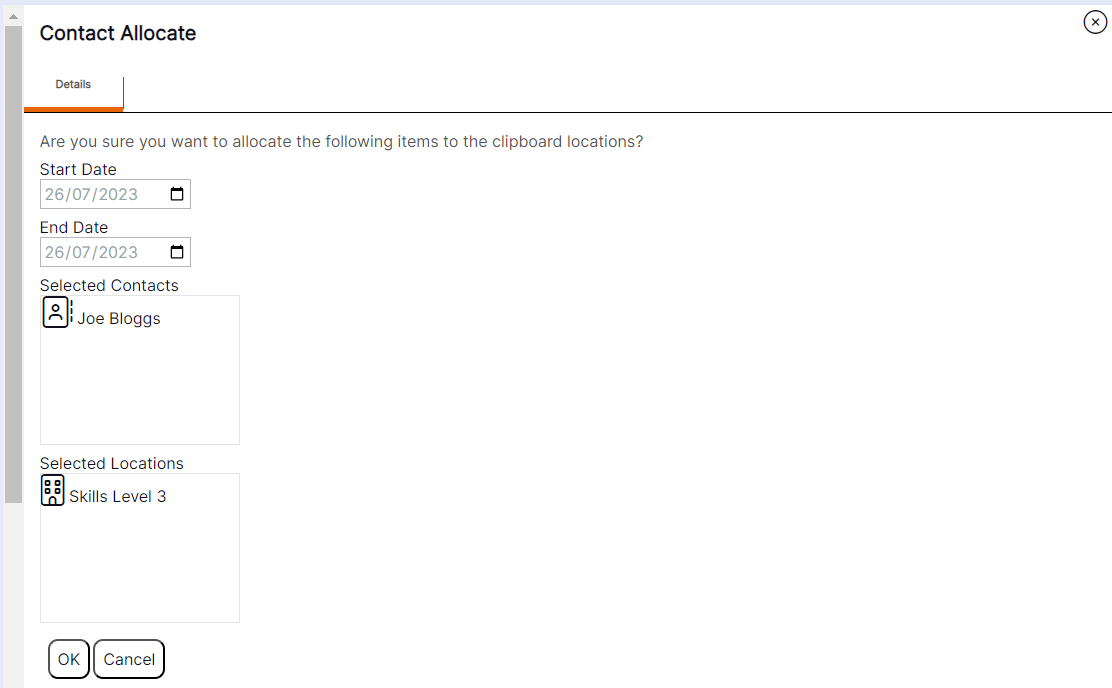 Step 8- Checking that the correct staff member and location are in the clipboard, select 'OK' to save or 'Cancel' to go back