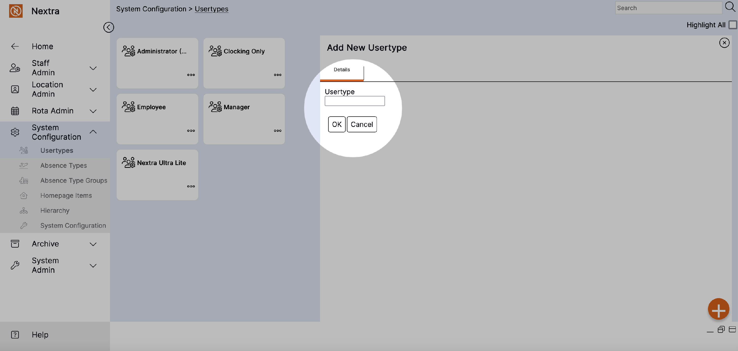 Step 6 – Select ‘OK’ to create the new ‘Usertype’.