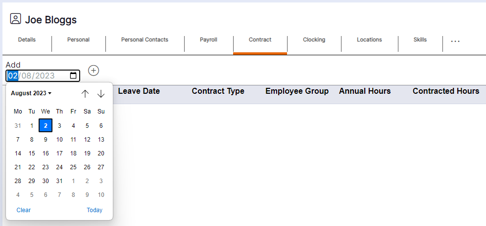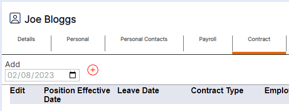 Step 1– Use the calendar icon to select the date the changes are effective from for the staff member in question. Once selected this date will populate in the ‘Add’ field.
