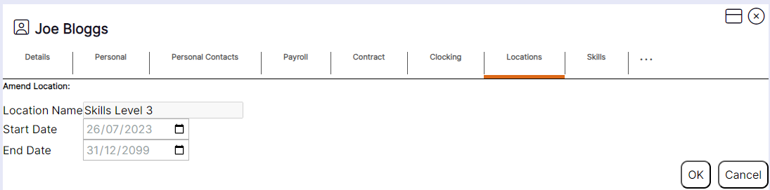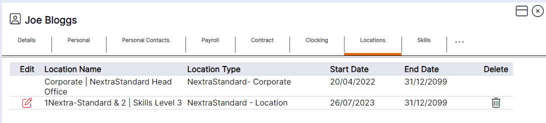 'Location’ and ‘Group’ records can be edited from the ‘Locations’ tab of the staff member record using the following steps: