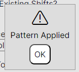 Step 8 – Select ‘OK’ when the system advises the patterns have been applied.