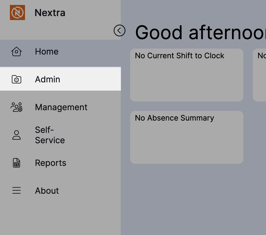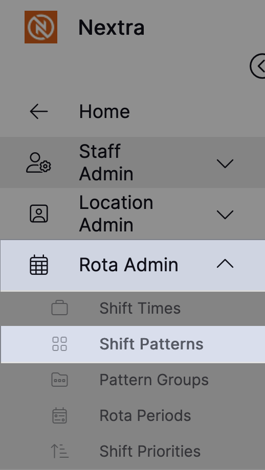 Step 2 – Select 'Rota Admin' and then 'Shift Patterns'