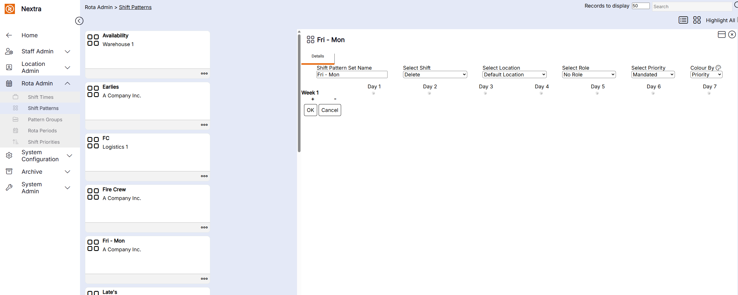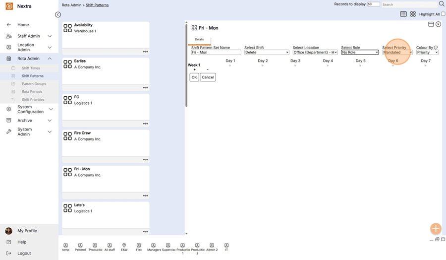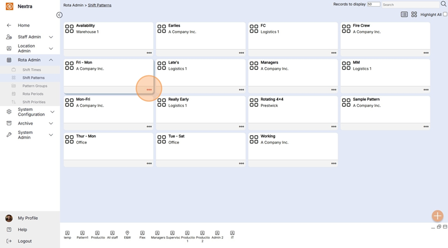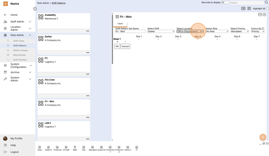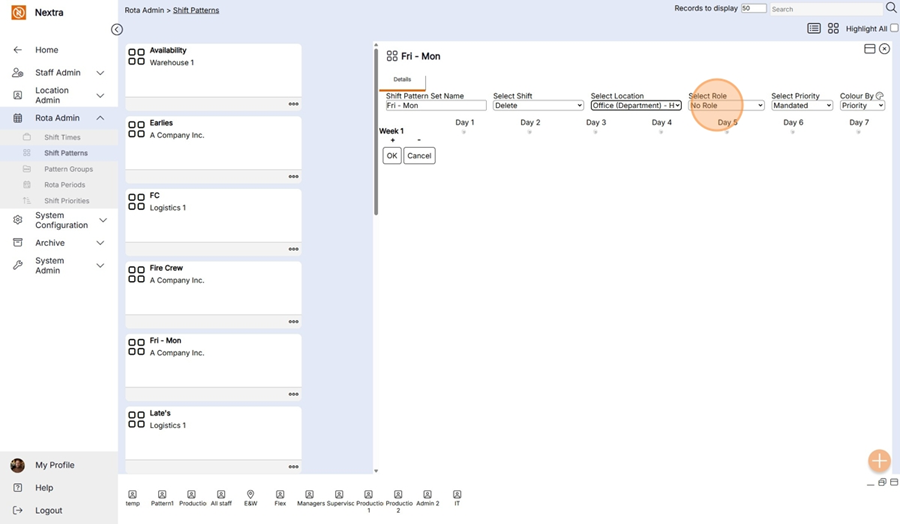 New ‘Shift Pattern’ records can be created in the system using the following steps: