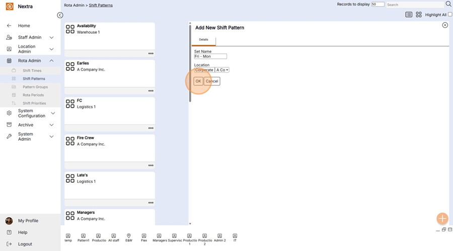 Step 5 – Select ‘OK’ to create the new shift pattern.