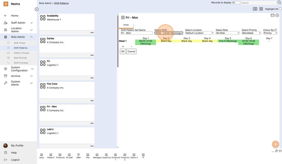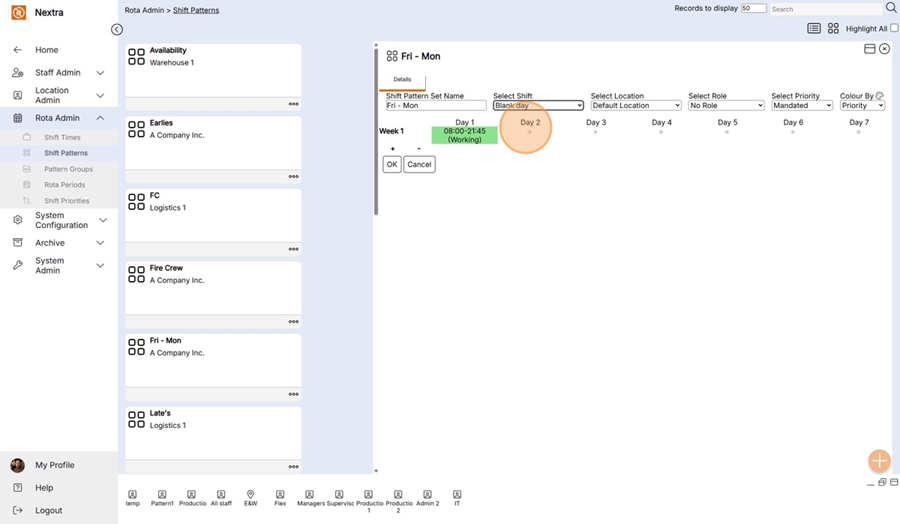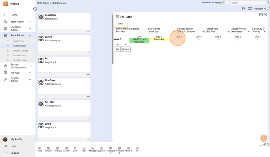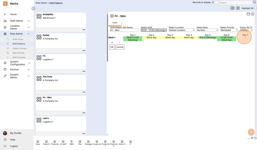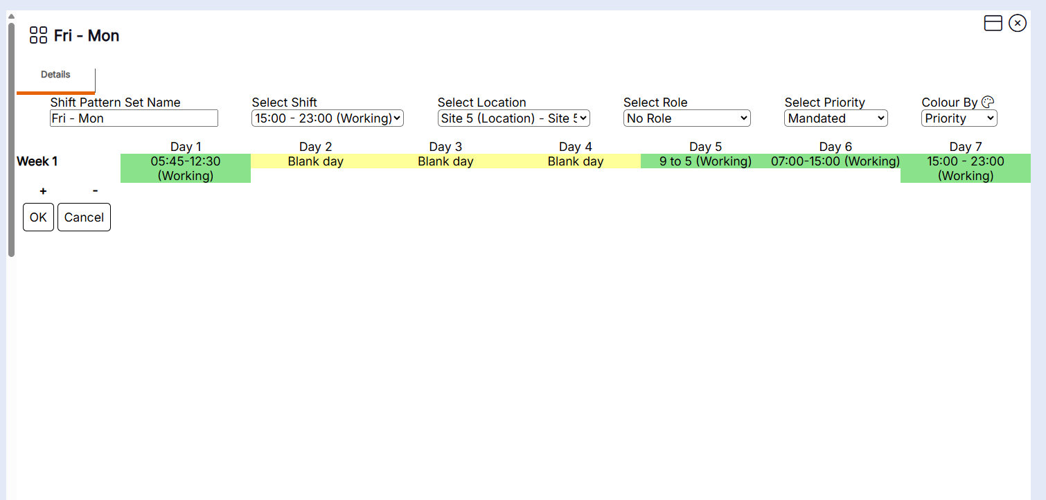 This Shift Pattern can now be used in the Rota.