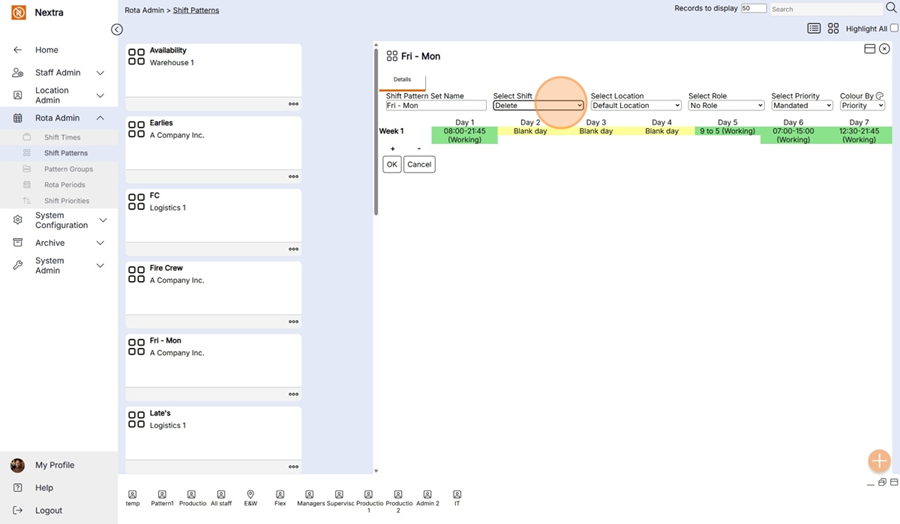 Deleting / Amended the shift pattern.