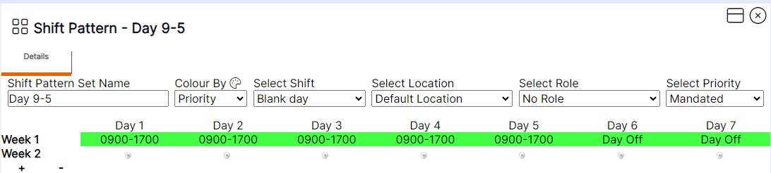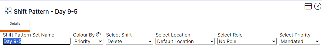 Please note: The name of the ‘Shift Pattern’ being viewed in the top left-hand corner will not update until the record is closed and reopened.