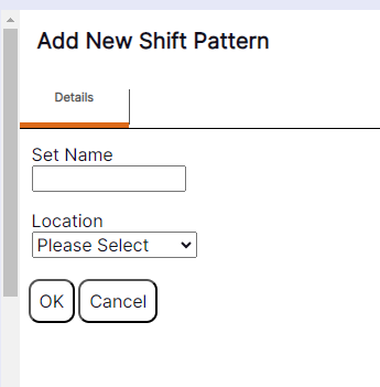 Set Name: Enter the name of the ‘Shift Pattern’ as you would like it to display in the ‘Admin’ screen on the ‘Shift Pattern’ management tab, and within ‘Pattern Groups’ as an option to assign to a group of staff members.