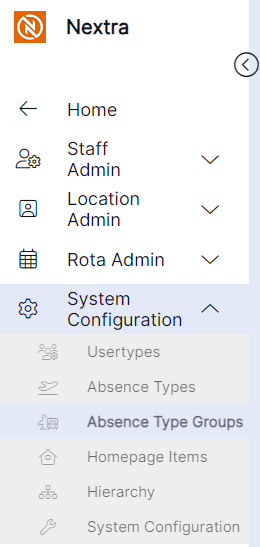 Step 4– Enter the name if the absence type group as you wish to see it displayed in the operational area of the admin screen and as an option to select on a contract.