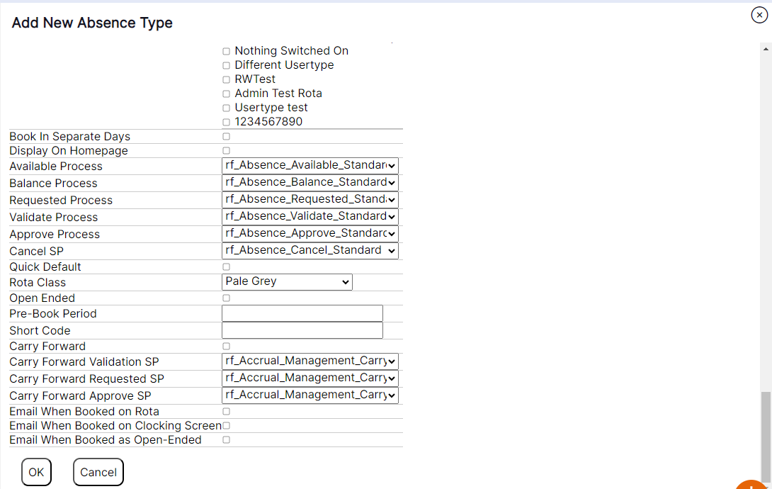 Creating new ‘Absence Types’ and assigning primary and secondary reasons