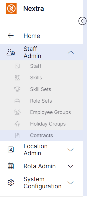 The ‘Contract’ icon allows the user to view, amend or create ‘Contracts’. These ‘Contracts’ will appear in the drop -down menu on staff member records within the ‘Contract’ tab and are used to calculate how much allowance should be deducted from staff when making leave, or absence bookings, and how much allowance they are entitled to for defined ‘Absence Types’ for a leave period (year) within the system. An FTE figure can also be assigned to a ‘Contract’, to enable the system to calculate the FTE figure for staff members working on a part-time basis.