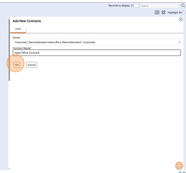 Step 4 – Select ‘OK’ to create the new ‘Contract’.