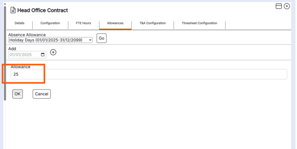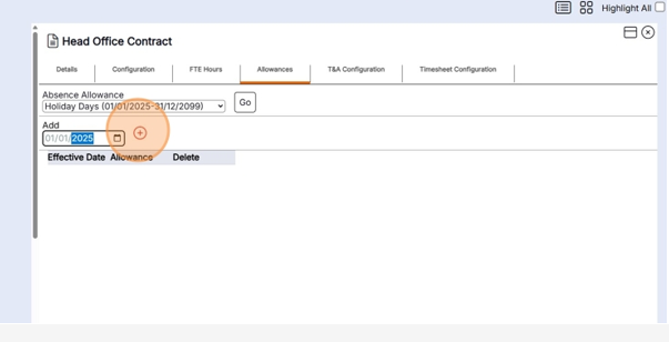 Step 15 - Add the start date the absence allocation is valid from and press the + icon to save