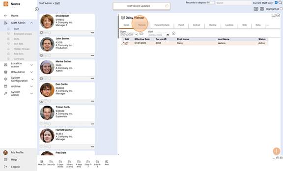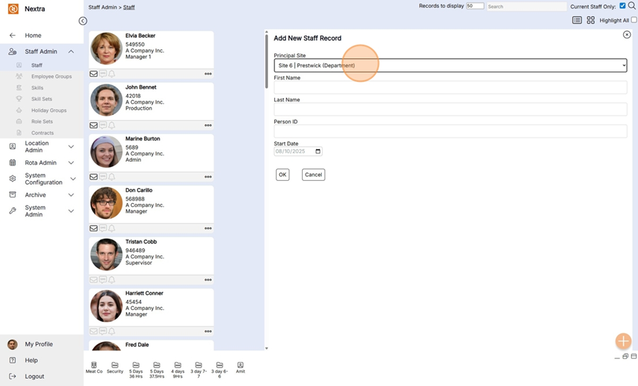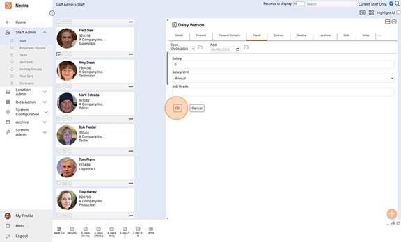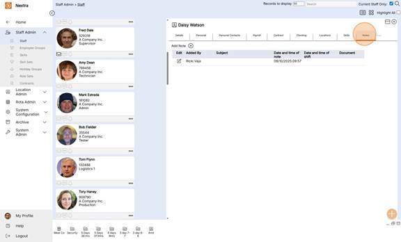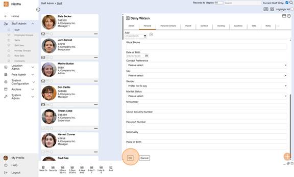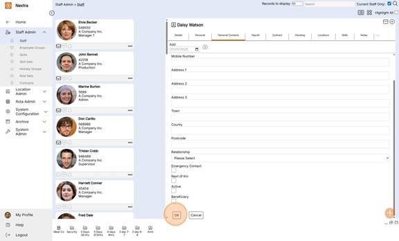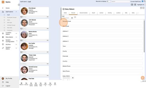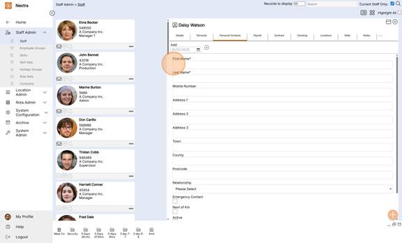 Next Steps; When the staff members record has been completed. shifts can be entered on to the staff member.