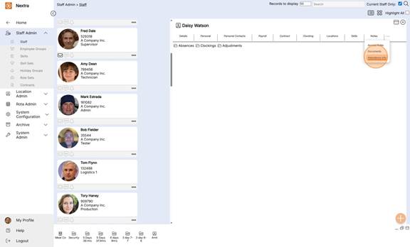 30. The "Documents" Tab - Here you can save any additional documentation related to the staff member - i.e. certificates, qualifications