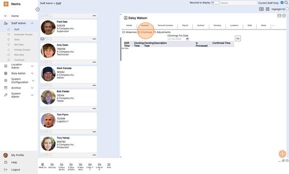 35. The "Clockings" tab will show any clockings for the staff member if you are using clockings.