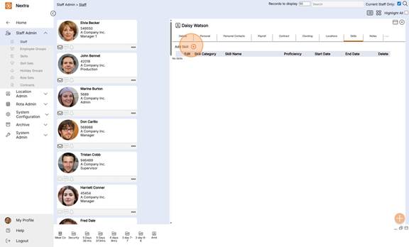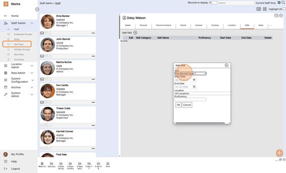 25. Set up any skills you wish to record for your staff member - If the skill set you wish to allocate to a staff member isn't available go to the menu "Skill Sets" and set the skill set up.