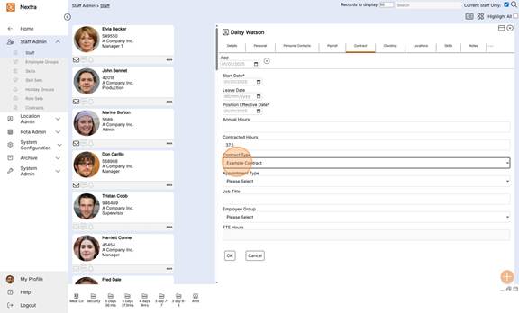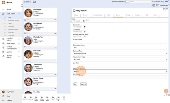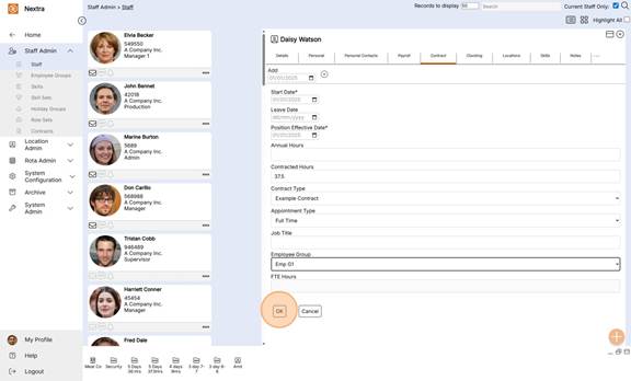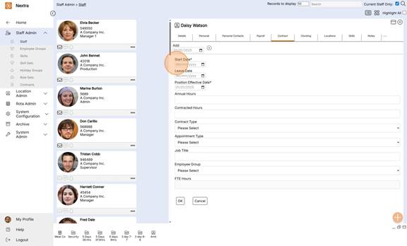 NB Enter the staff members start date & when they leave their leave date can be added here,