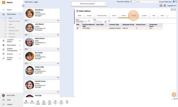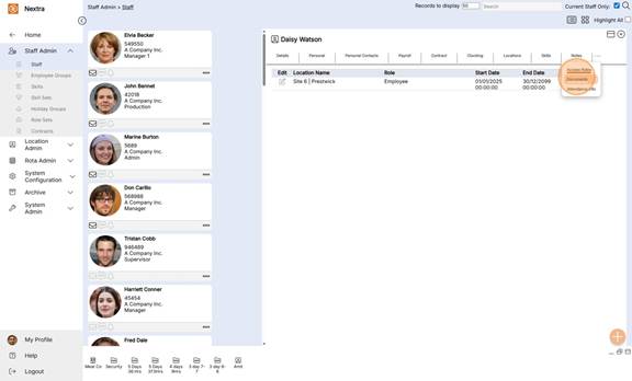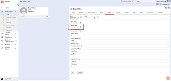 When a Staff member leaves and is no longer employed by the business to remove them from Rota's, Payroll, Clockings etc Add a leave date to the Contact