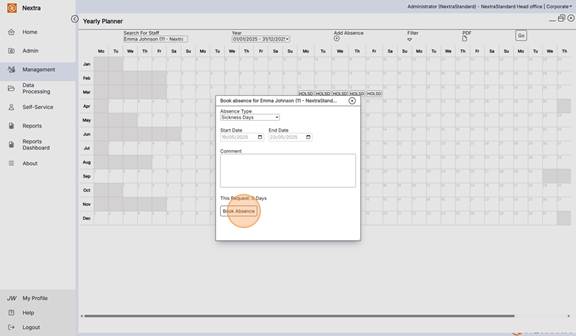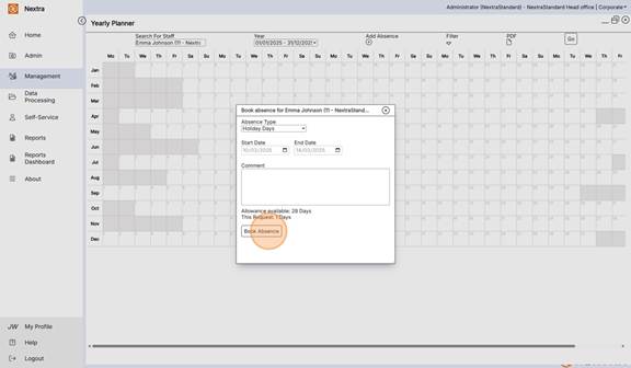 Comments can be added to the booking and allowance information shown here too. Press the Book Absence button to confirm