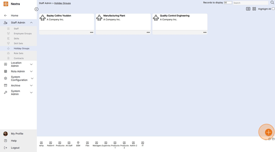 ‘Holiday groups’ allow the user to define the absence booking rules that staff members assigned to this group are associated with. Users should assign staff to the relevant Holiday Group using the ‘Clipboard’ functionality. All staff must be a member of a ‘Holiday group’ to be able to book any type of leave via self-service or for any managers with access to the rota to manually assign them absence bookings.