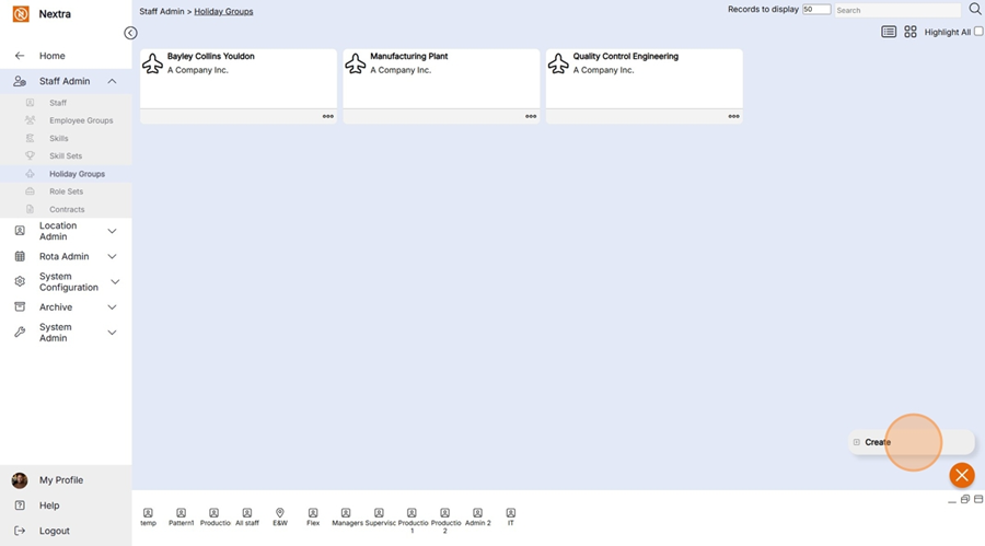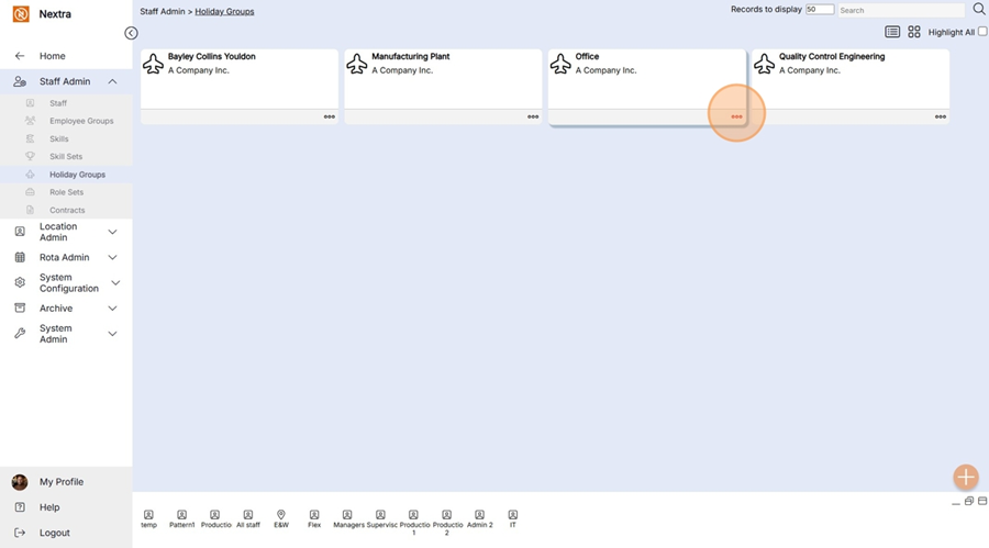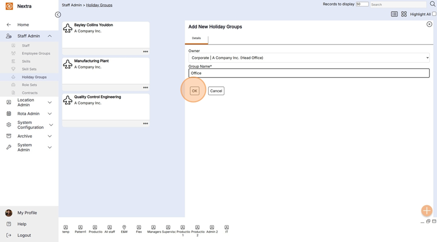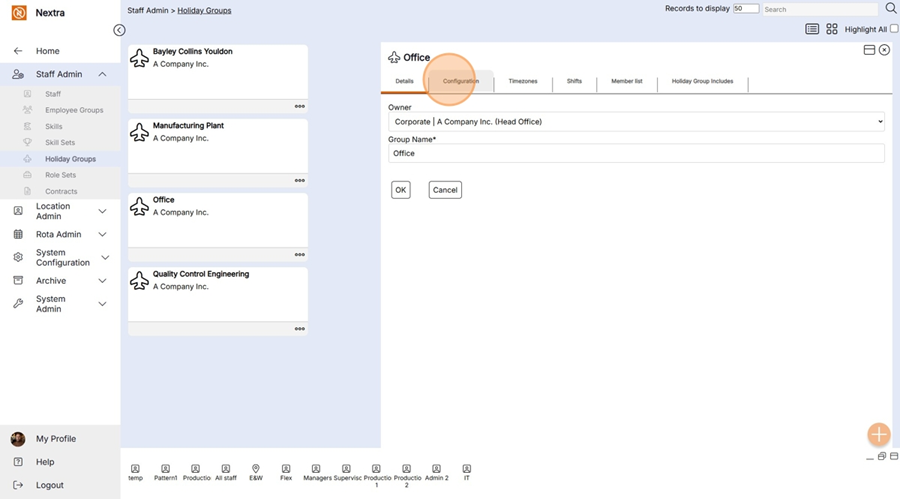 The new Holiday Group will then show on the group screen - we now need to configure the Holiday Group set up.
