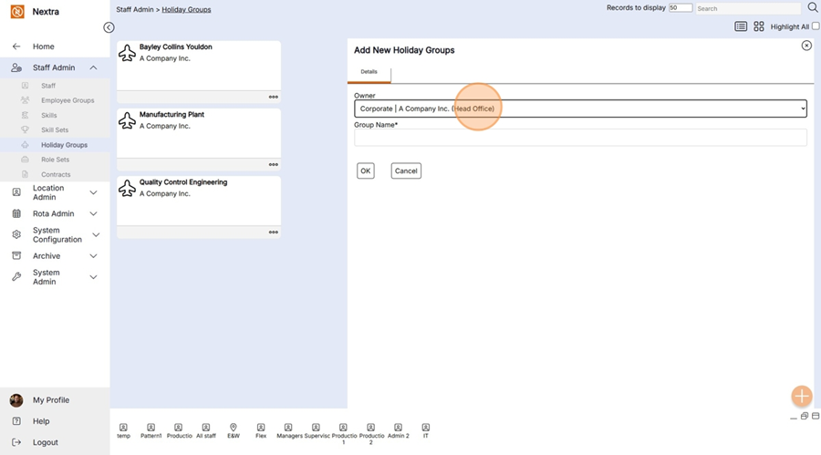 Configuration details can be deleted from a ‘Holiday Group’ by deleting data added to the fields and saving the record; however, it is NEXTRA’s recommendation that records are NOT deleted for audit history purposes and to ensure that the system allows and prevents leave booking requests within the correct parameters accordingly. If there is a change to details, a new ‘Holiday Group’ should be created to maintain a history.