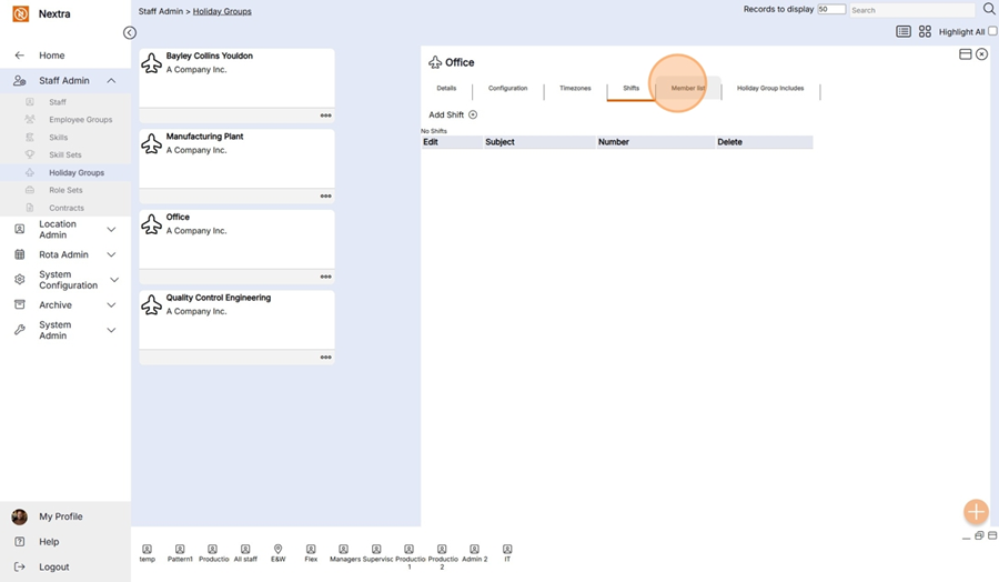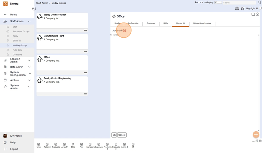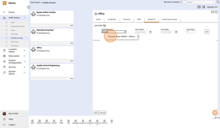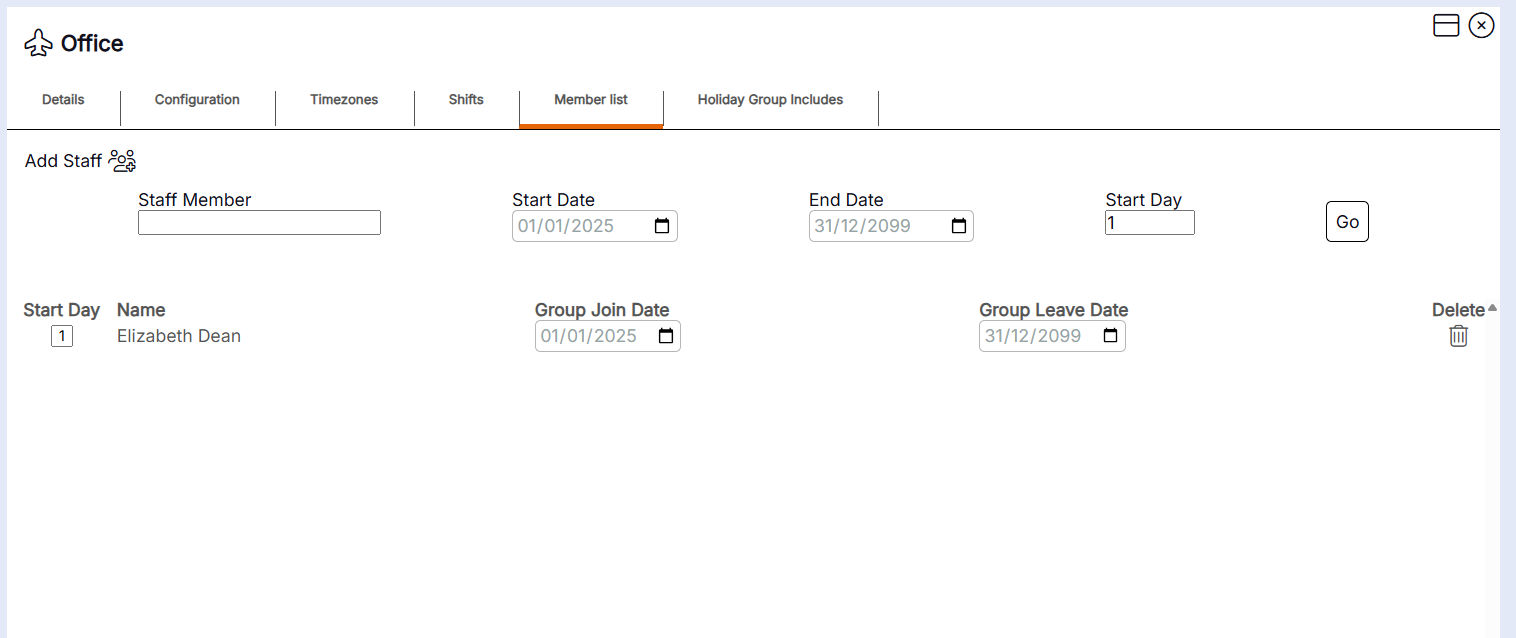 'Members List' - This is where staff members are added to the Holiday Group list.