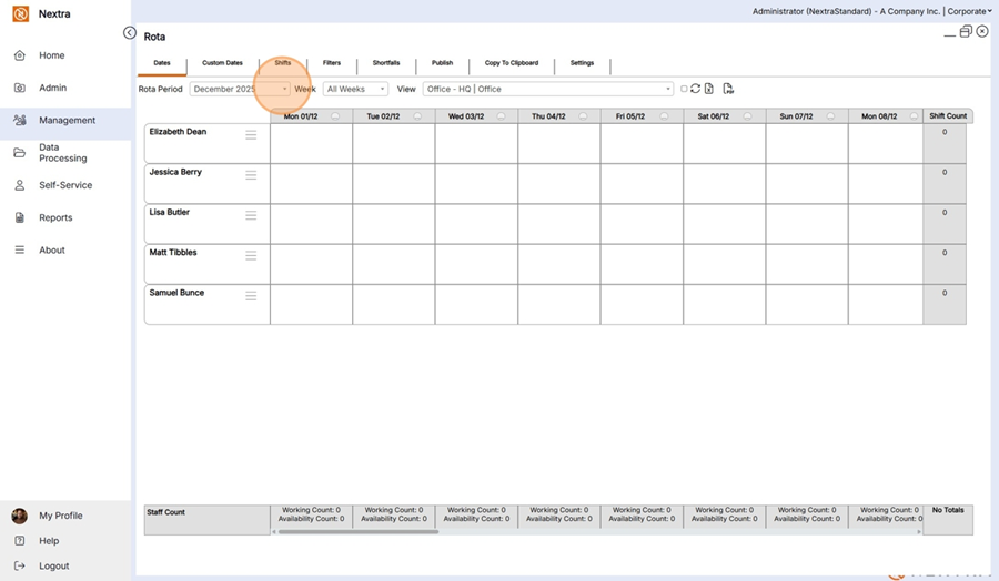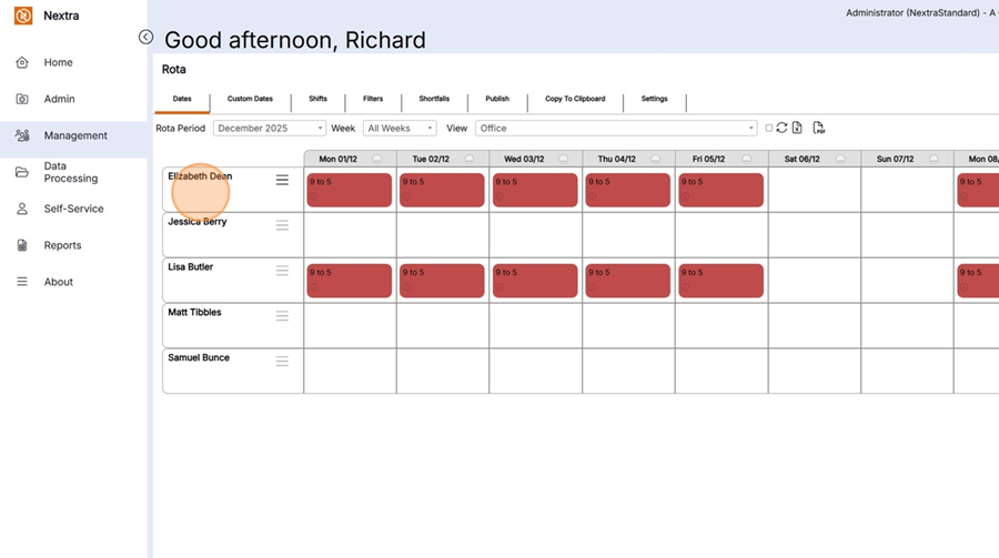 Select the month you are creating the rota for - In this case we are looking at December 2025