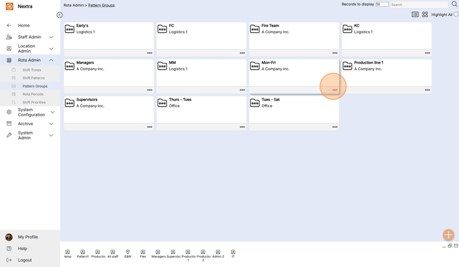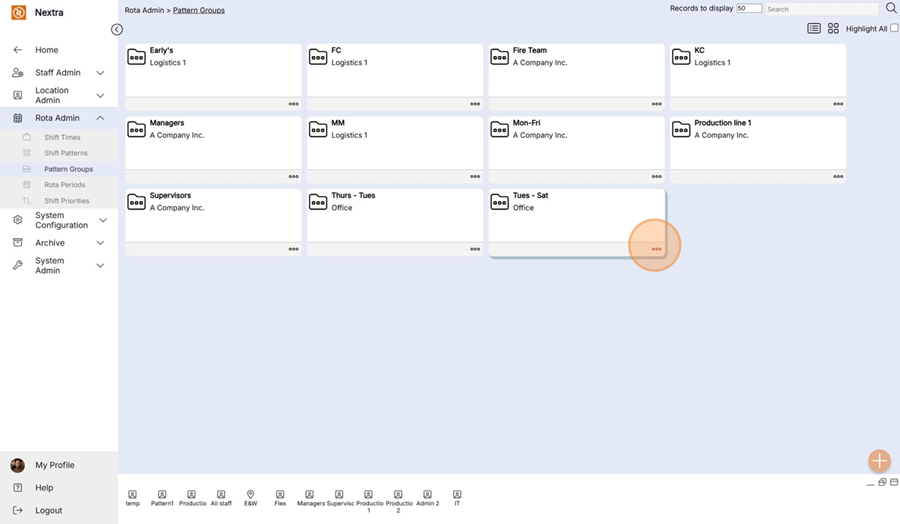Go back to the Menu | Click Admin | Rota Admin | Pattern Groups