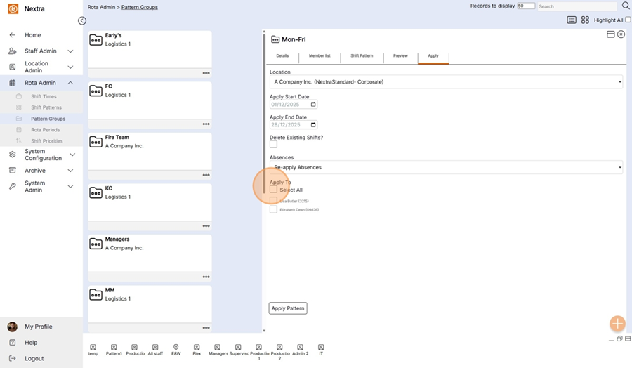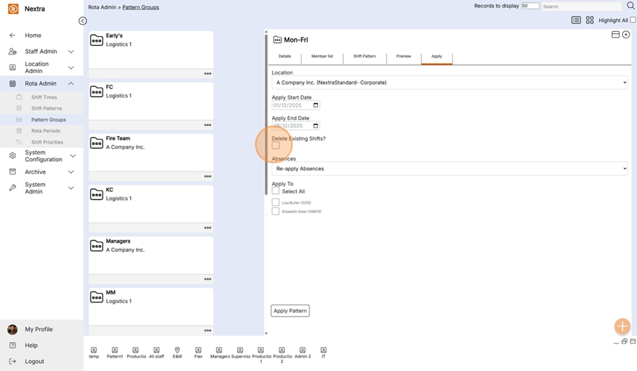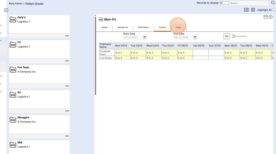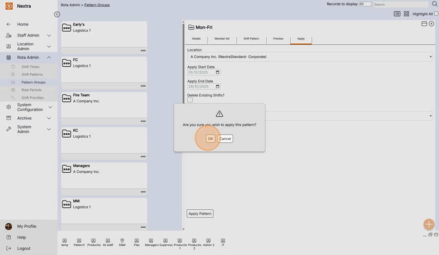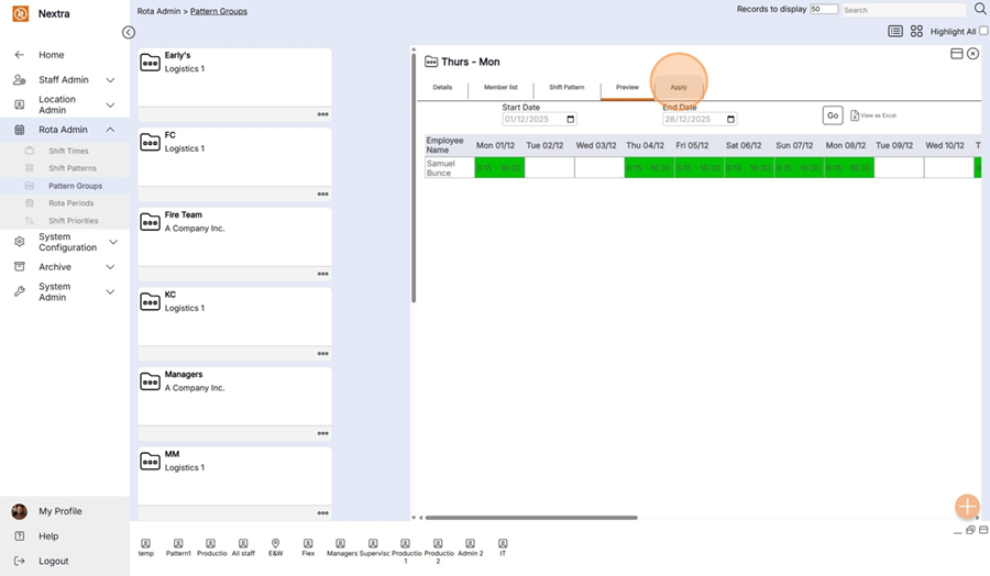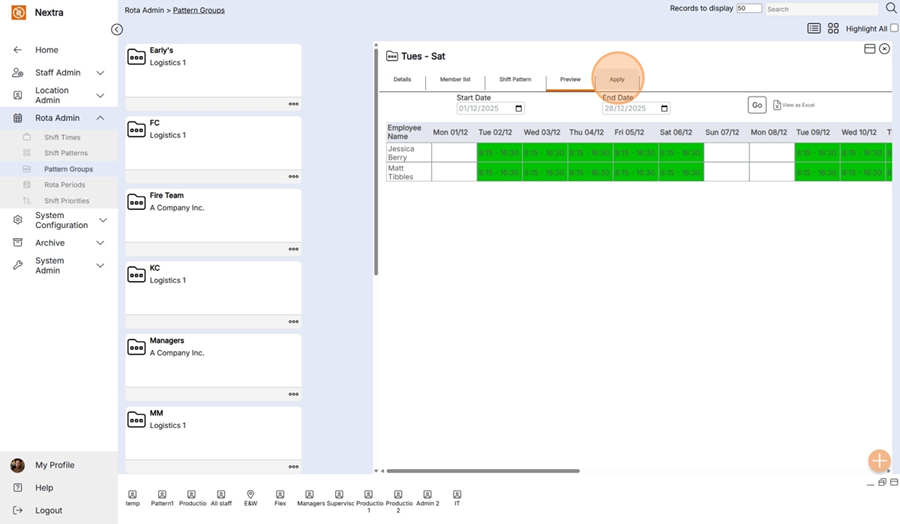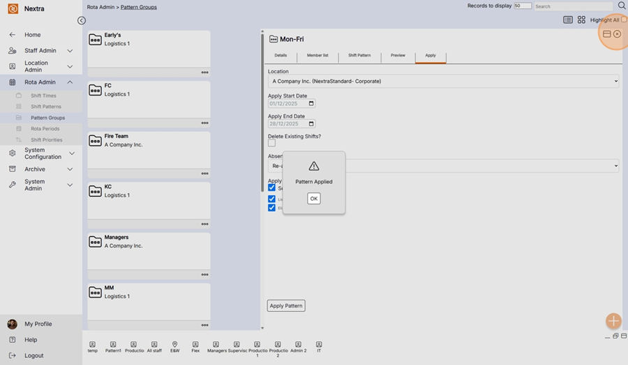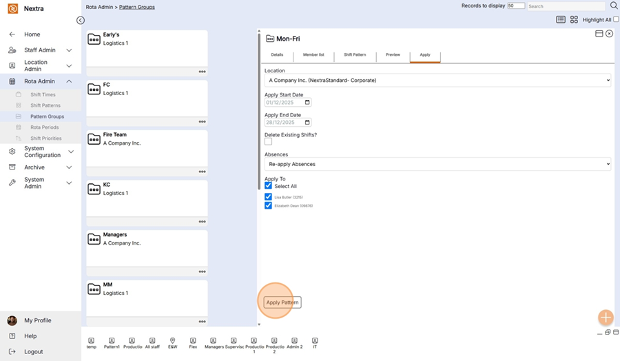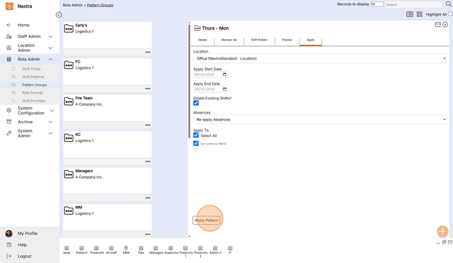 Step 7 - Click the apply pattern for the Rota to now be updated.