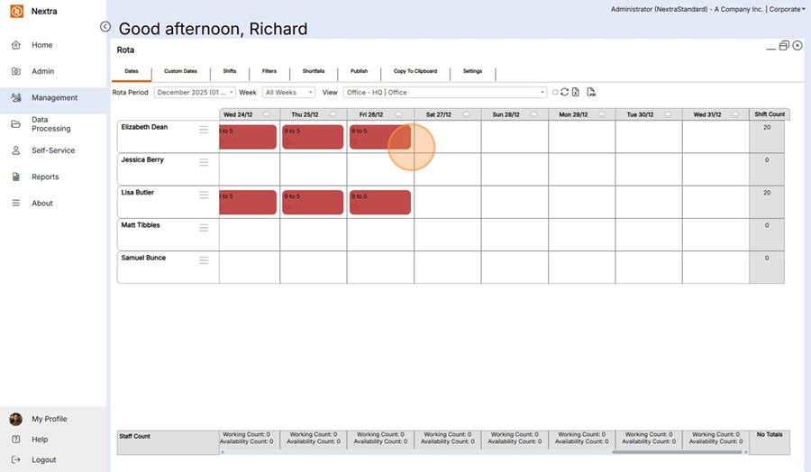 Check the dates are the ones the rota is being created for - 1st Dec - 28th Dec 25