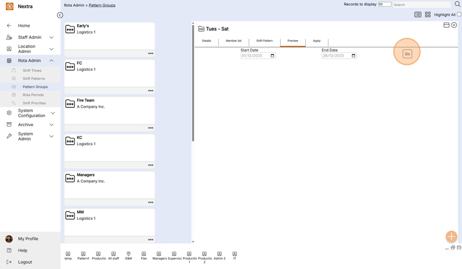 Enter the Dates the rota is being applied too - In this case 1st December - 28th December 25 - Click Go to save