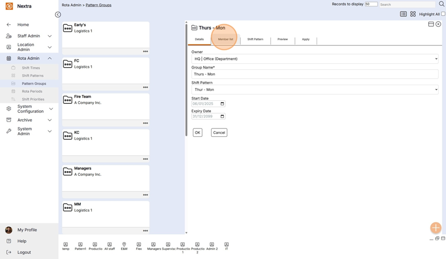 Go to Staff Admin | Rota Admin | Pattern Groups