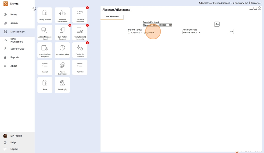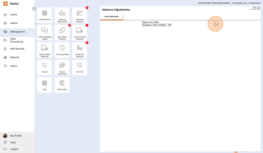 The Absence Adjust tile is found in Management