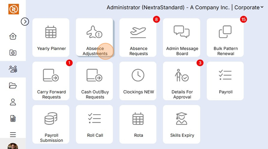 Absence Adjustment Tile