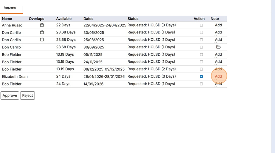 Optional - in the Add Note Column there is the option for a note to be attached to the absence request