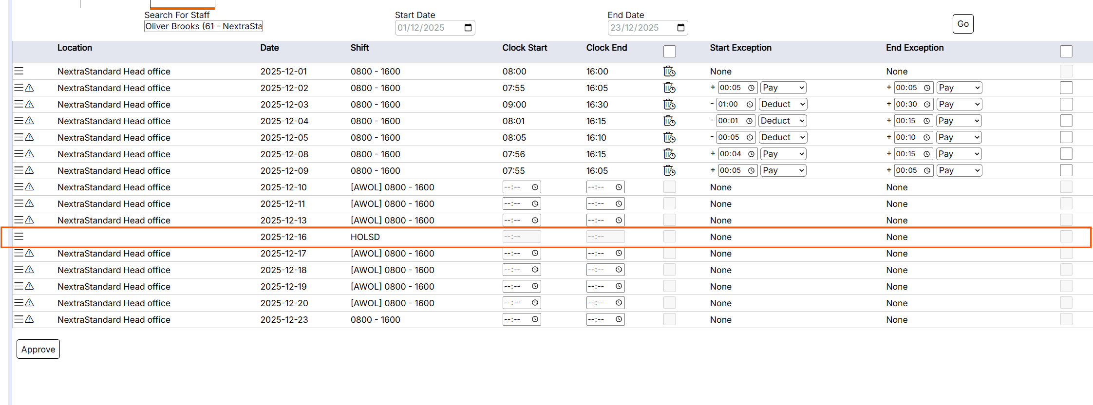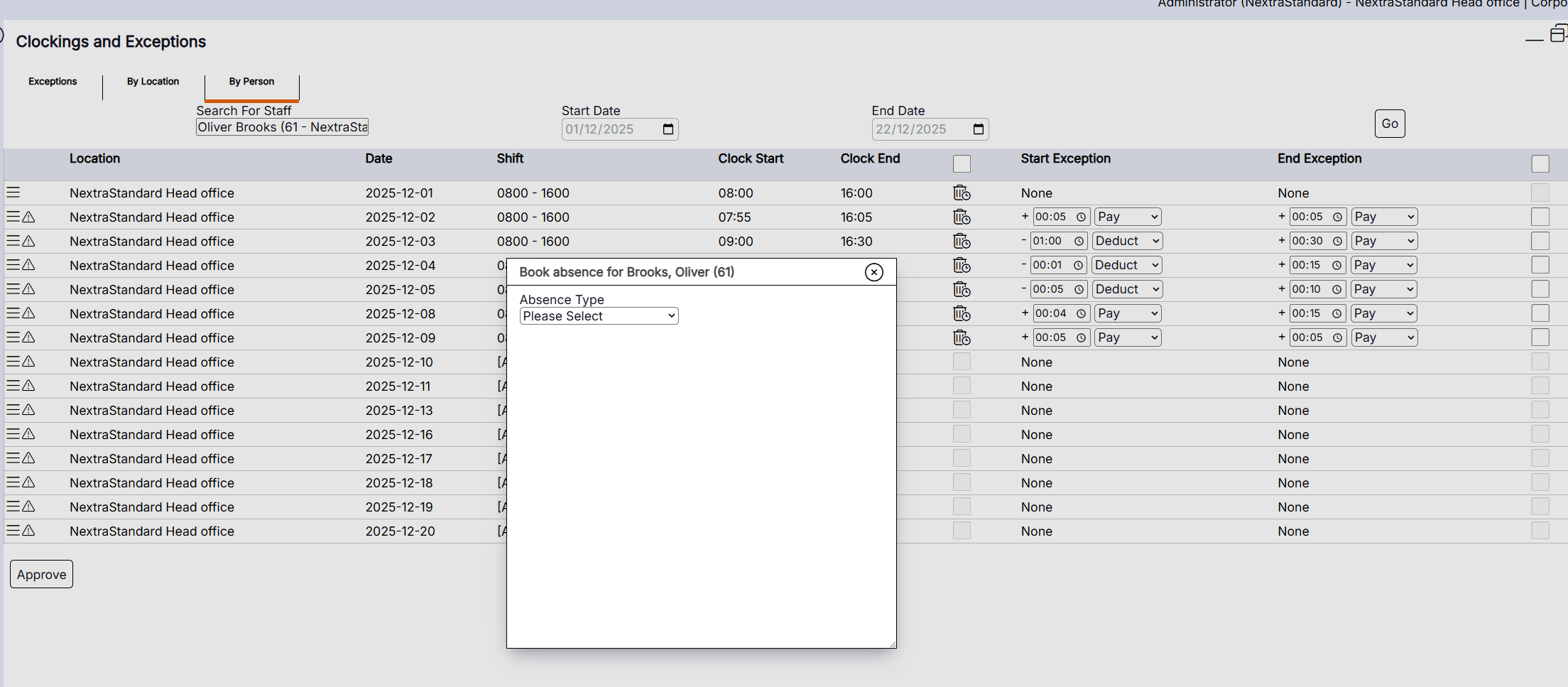 There are a number of ways to add a staff absence - In this example we will add through the Management Clockings and Exception tile.